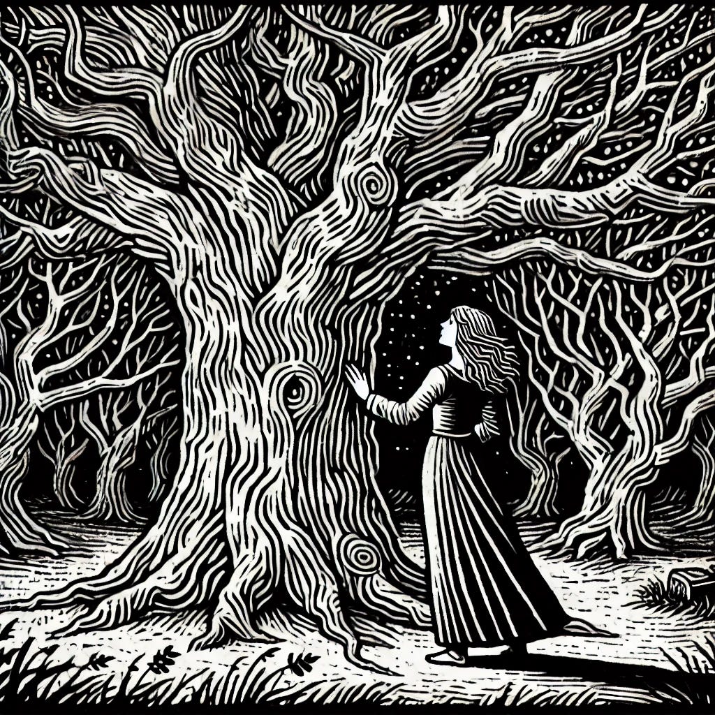 "It's over," he said, raising his blade. But she smiled, a strange, knowing smile, and whispered, "Not for me." His eyes opened wide when ancient tree moved with heavy crackling sound.